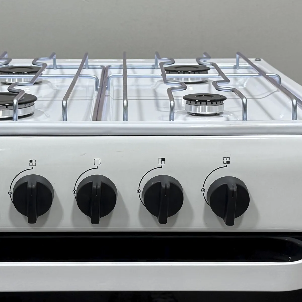 -Plancha, frente perilla y puerta parrilla enlozada negra.