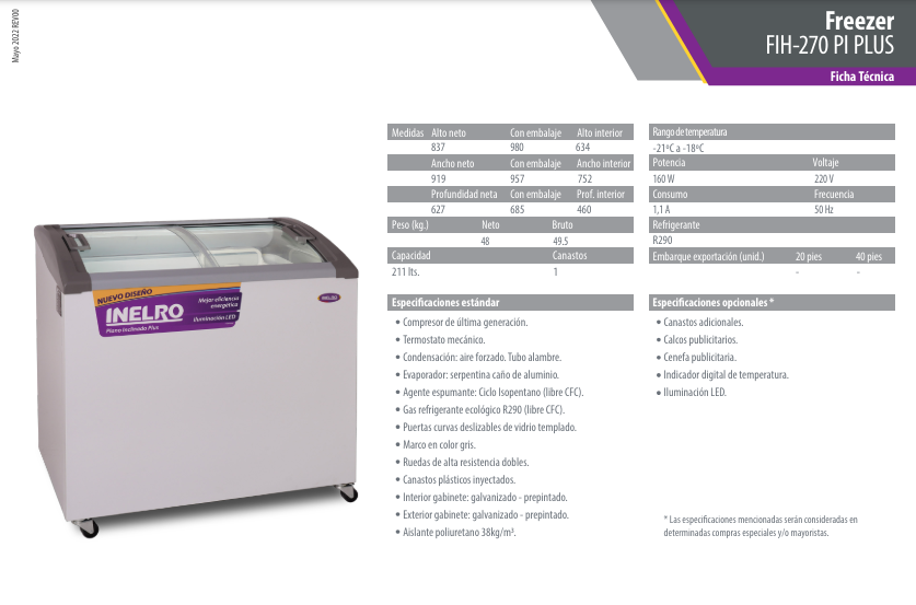 Nuevo Freezer Exhibidor Horizontal con Tapa de Vidrio Curvo. Plano Inclinado. Ruedas Dobles Giratorias de Alta Resistencia.