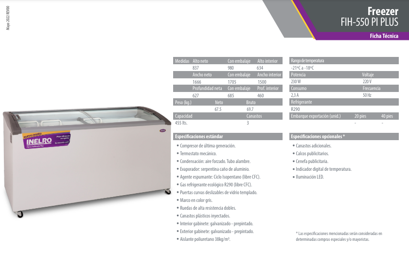 Freezer Inelro FIH-550-PI PLUS 455lts