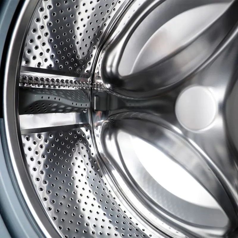 Tambor horizontal, con bajo consumo de agua y amplia puerta de carga.