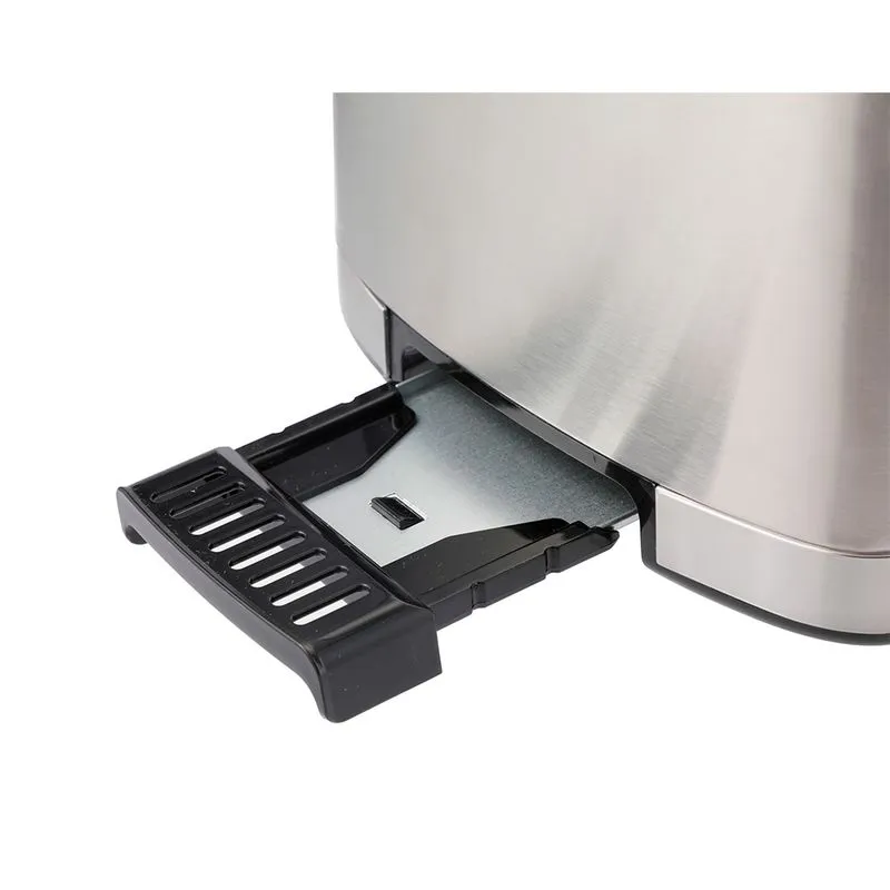 Ideal para cocinas pequeñas, esta tostadora de 800W no solo ahorra espacio, sino que también ofrece un control preciso sobre el tostado. Con 7 niveles ajustables, podrás lograr desde un dorado suave hasta un tostado extra crujiente, satisfaciendo los gustos de toda la familia. Su pantalla LED digital facilita la selección y visualización del nivel de tostado, haciendo que preparar el desayuno sea rápido y sencillo. Fabricada en acero inoxidable, con capacidad para 2 rebanadas, cuenta con bandeja recogemigas extraíble, enrolla cable en la base, indicador luminoso y paredes frías al tacto.